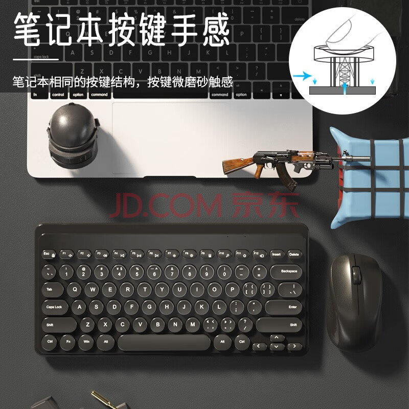 商品相册:B.O.W航世 MK610 无线键盘鼠标套装 复古巧克力79按键 笔记本电脑办公通用键鼠套装 黑色第