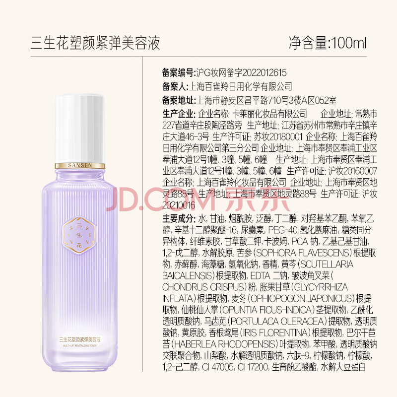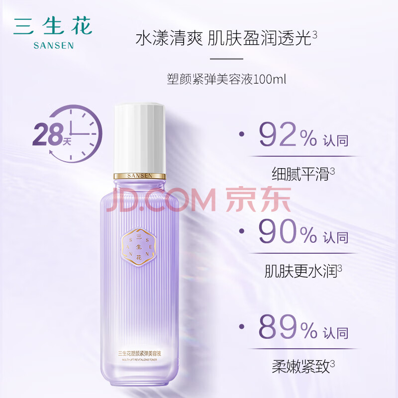 商品相册:三生花百雀羚出品 爽肤水 塑颜紧弹美容液100ml 护肤补水保湿 提拉紧致第1张/共4