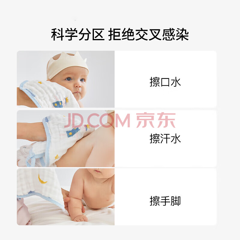 商品相册:嫚熙(EMXEE)婴儿口水巾棉新生手帕纱布洗脸巾宝宝毛巾洗澡擦脸小方巾6条装第