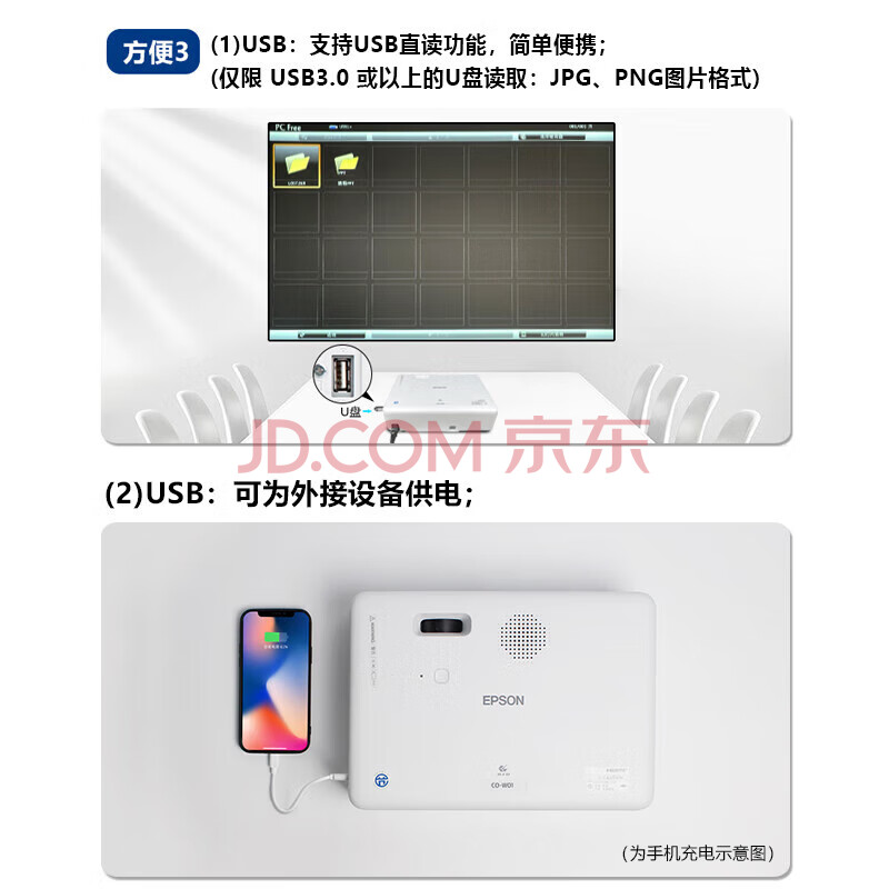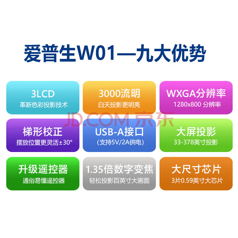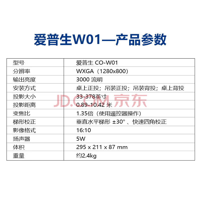 商品相册:爱普生(EPSON)CO-W01 办公投影仪 投影机家用商用投影机 网课推荐 便携智能影院 (3000流明 高清 两年质保)第