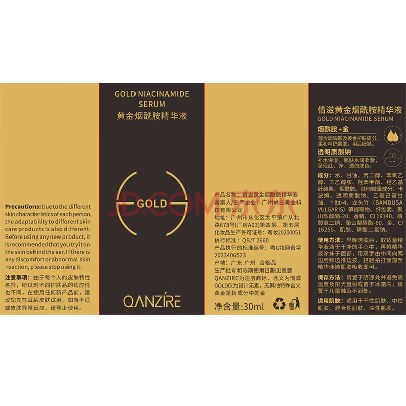 商品相册:倩滋(QIANZI)黄金烟酰胺原液30ml 补水保湿护肤精华液紧致嫩肤面部精华第