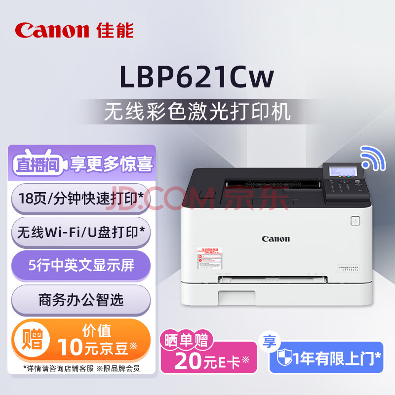 商品相册:佳能(Canon) LBP621Cw A4幅面无线彩色激光单功能打印机(打印/大容量进纸家用 )第