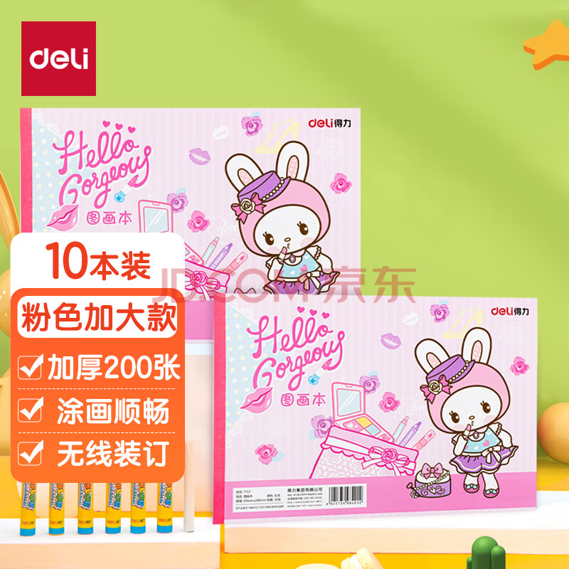 商品相册:得力(deli)得力(deli)10本200张画画本空白图画本幼儿园小学生绘画本涂鸦本粉色学生开学文具第