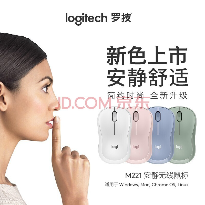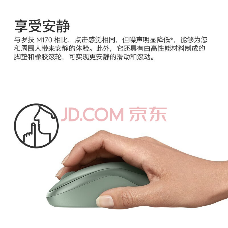 商品相册:罗技(Logitech)无线鼠标 笔记本电脑办公用品 对称外设可自主休眠 M221 薄荷绿第