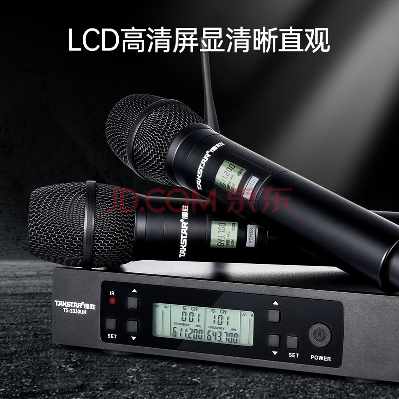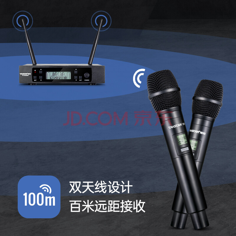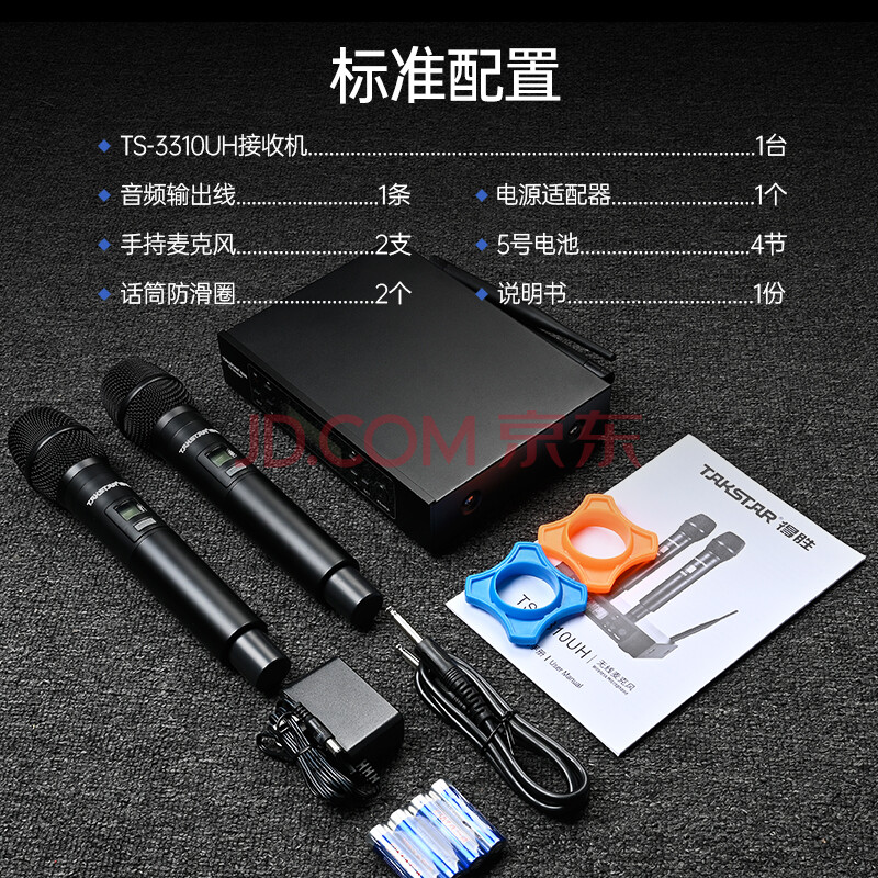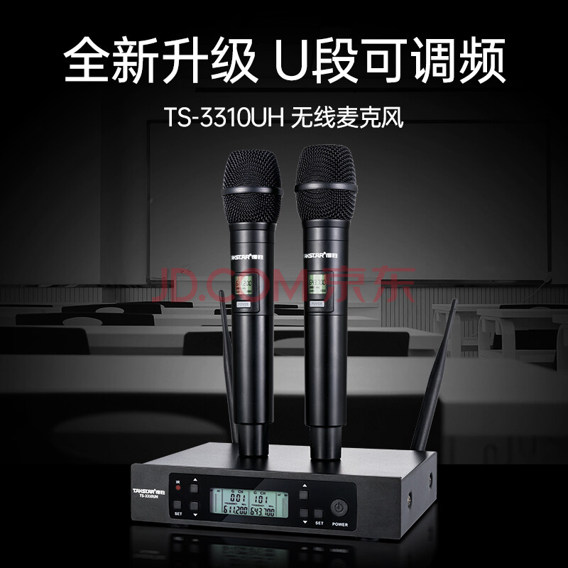 商品相册:得胜(TAKSTAR)TS-3310UH一拖二无线话筒麦克风 家庭ktv专业k歌手持会议主持舞台演出 黑色第