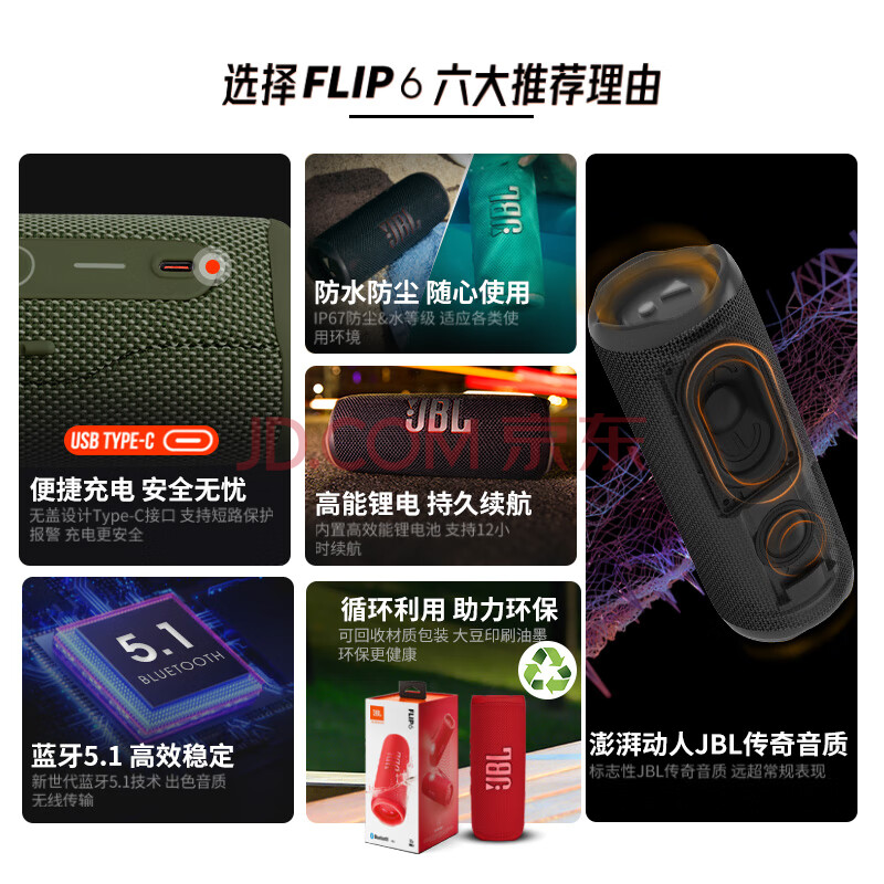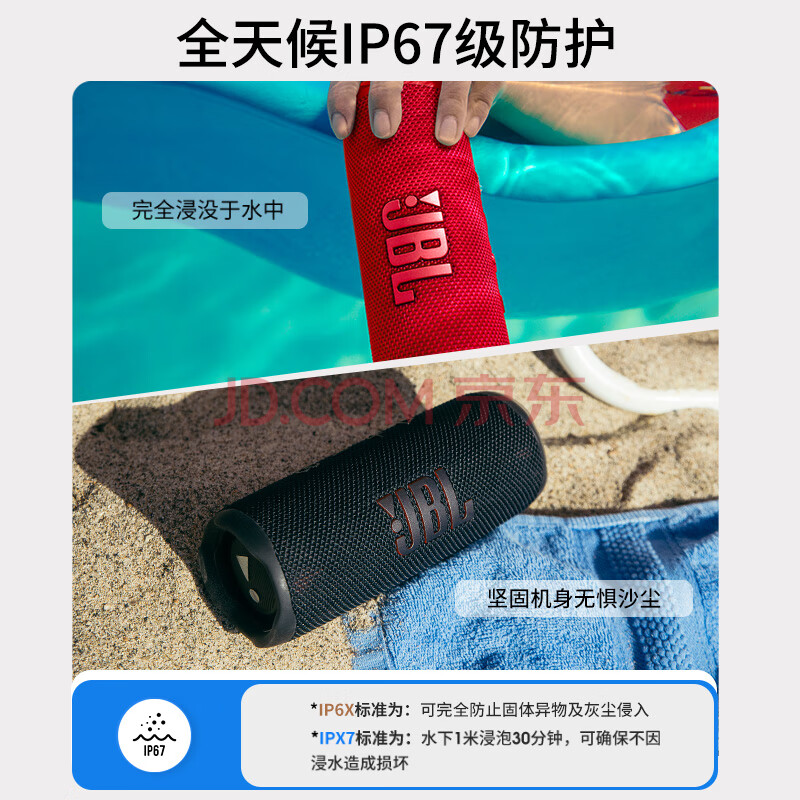 商品相册:JBL FLIP6 音乐万花筒六代 便携蓝牙音箱 桌面音响 户外防水音响 出游骑行音箱 送礼物 潜海蓝第
