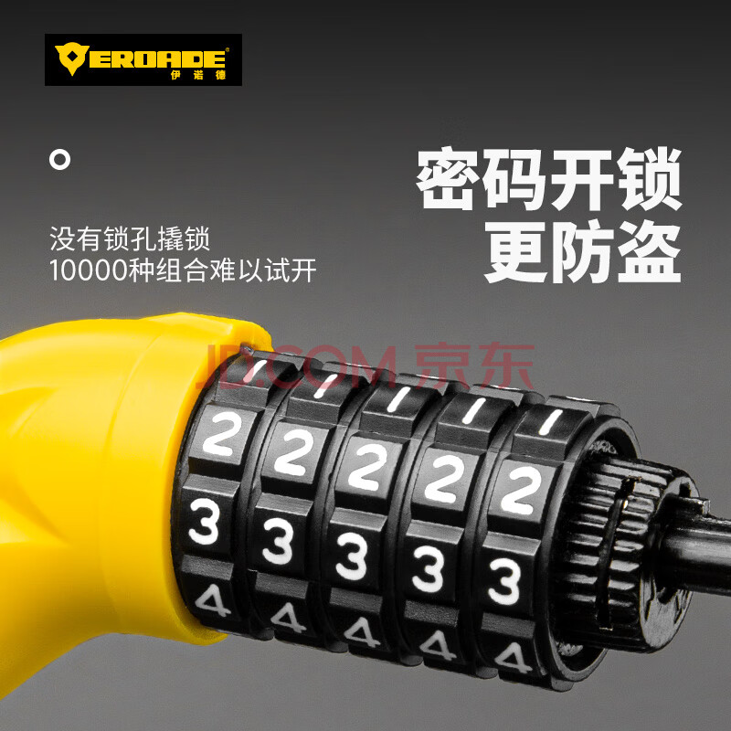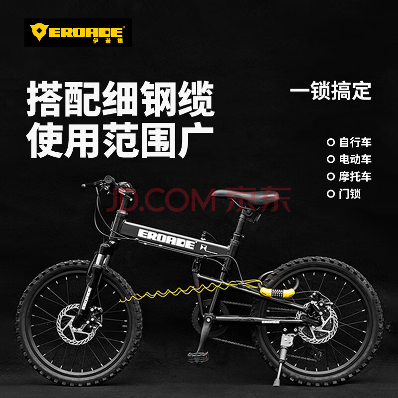 商品相册:EROADE伊诺德自行车锁密码钢缆锁山地车锁防盗便携式车锁钢丝密码锁第
