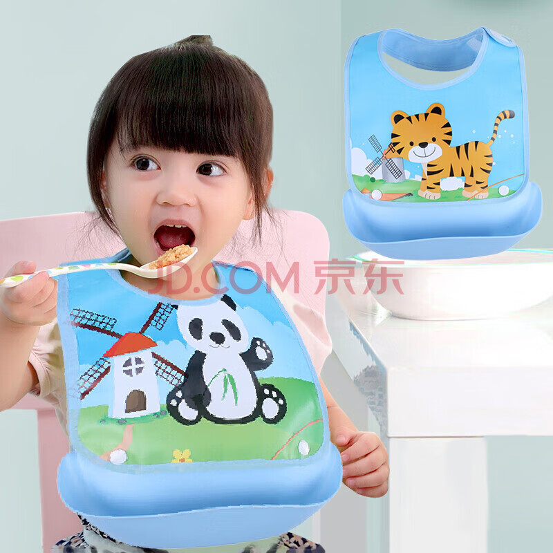商品相册:9i9宝宝吃饭围兜围嘴儿童防水防脏防溅可拆可调节吃饭兜2个A204第