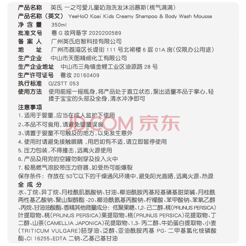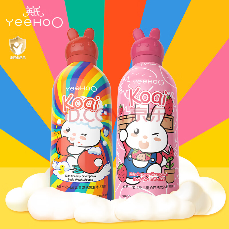 商品相册:英氏儿童洗发水沐浴露二合一 婴儿洗沐泡沫沐浴露小奶泡桃子味+草莓味第