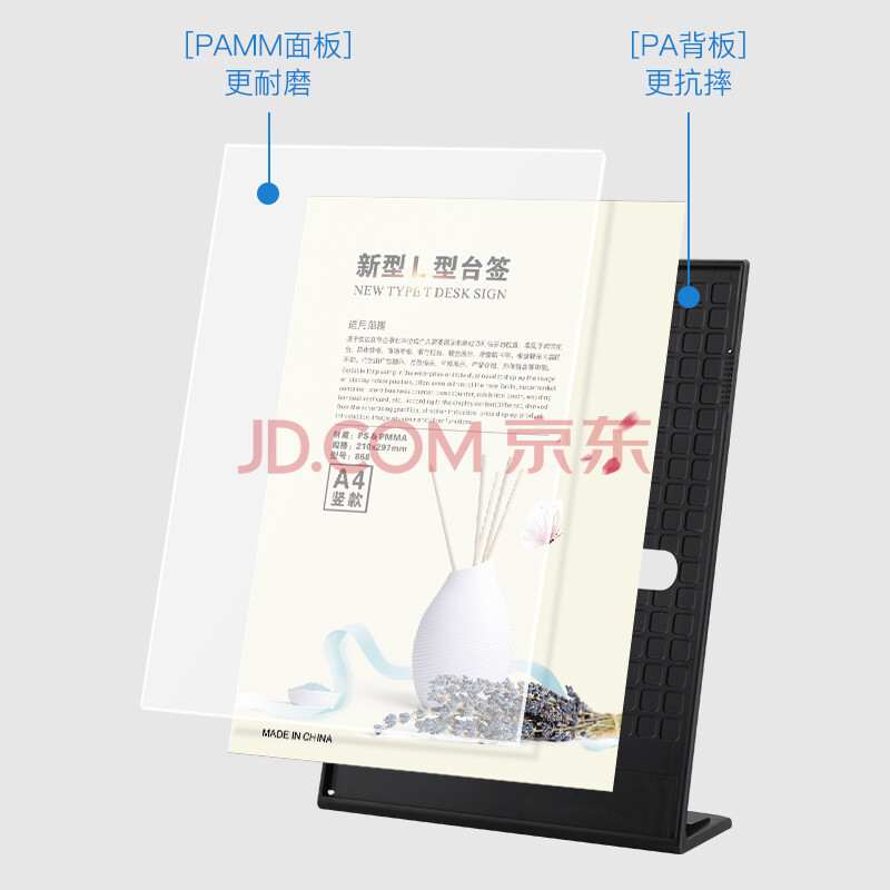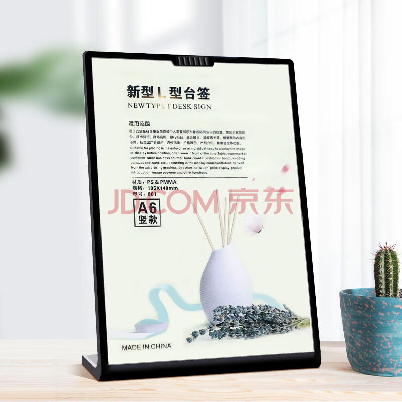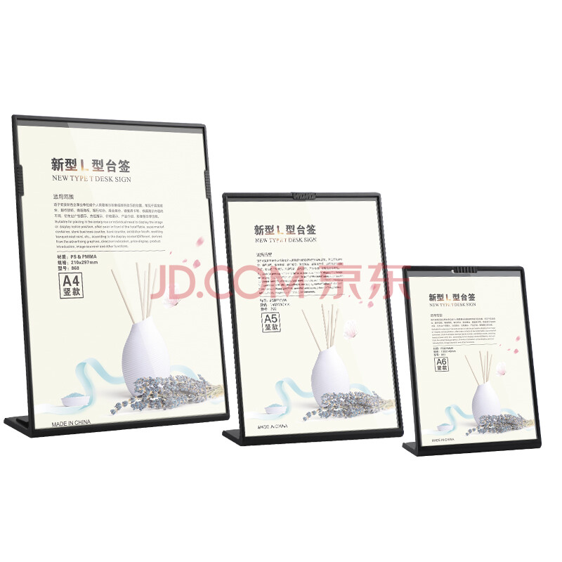 商品相册:得印L型桌牌 桌面台卡亚克力透明A6台签广告展示牌立牌价格牌展会展台银行柜台标牌婚宴席卡黑色6020第