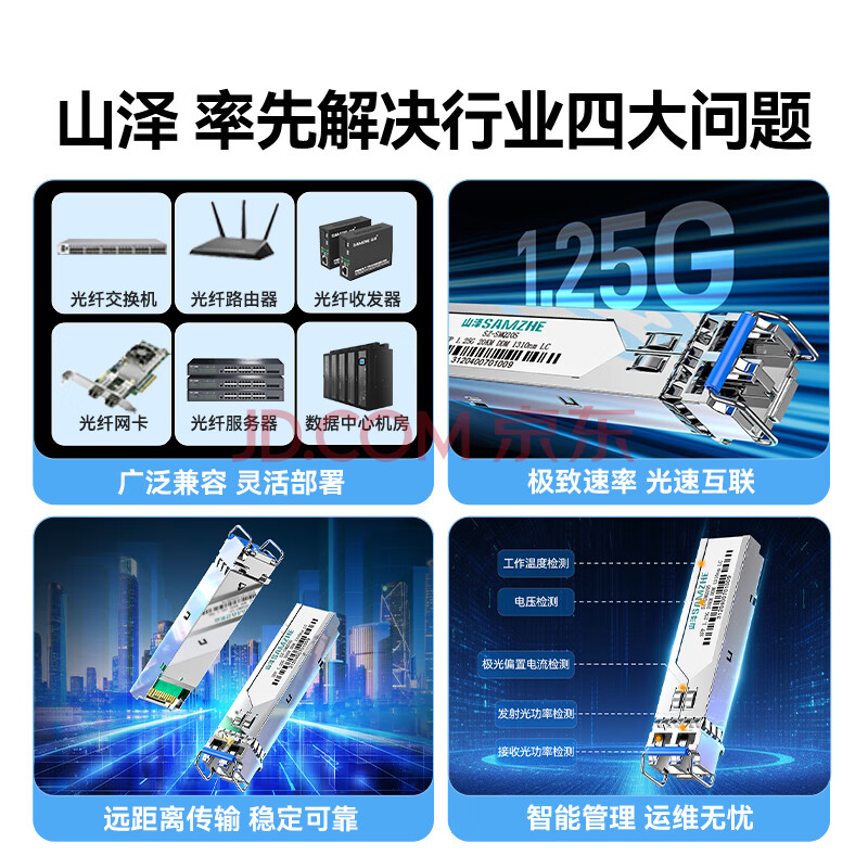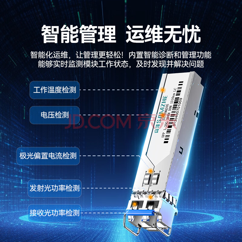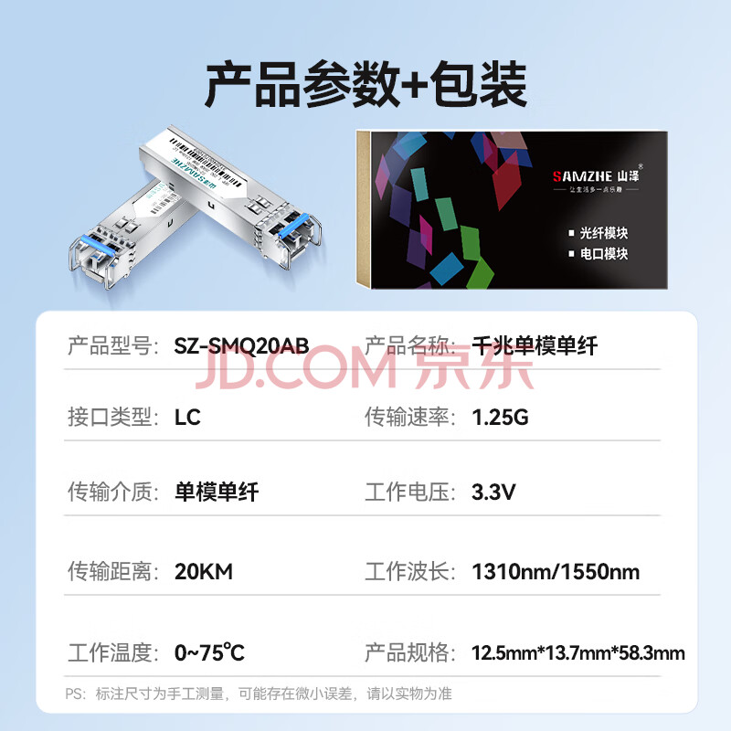 商品相册:山泽千兆光模块 SFP+光纤模块1.25G单模双纤1310nm兼容华为/华三/普联等LC接口20公里 一只SZ-SMQ20S第