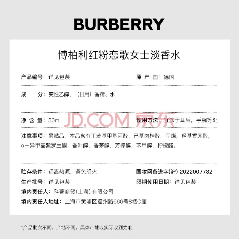 商品相册:博柏利(BURBERRY)红粉恋歌女士淡香水50ml节日生日礼物送女友送老婆送女生第