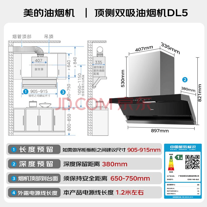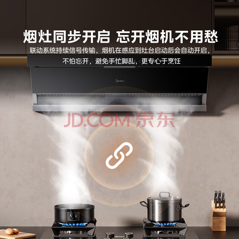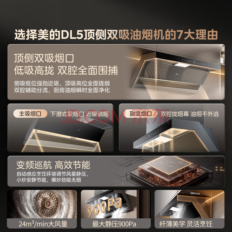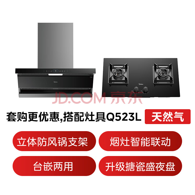 商品相册:美的(Midea)抽吸排油烟机灶具套装家用24风量顶侧双吸烟灶联动智控变频烟灶DL5+Q523L天然气【套装商品】第