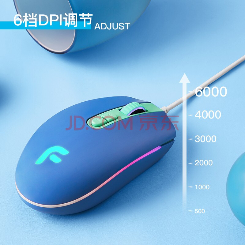 商品相册:迪摩(DEARMO)F17有线鼠标游戏鼠标RGB鼠标电竞鼠标绝地求生吃鸡鼠标7键宏定义鼠标 芙尼蓝 6000DPI第