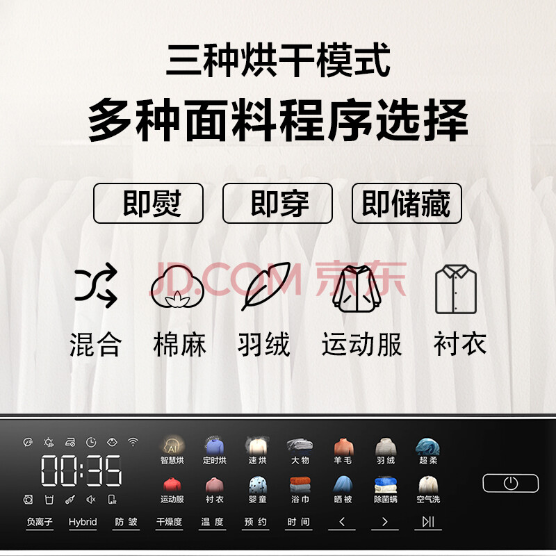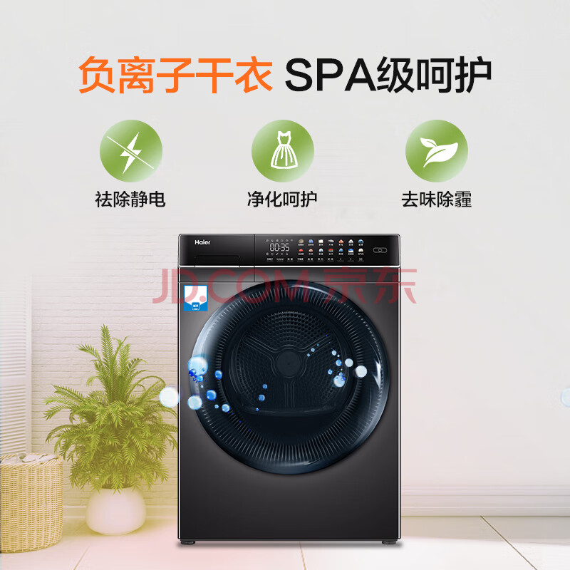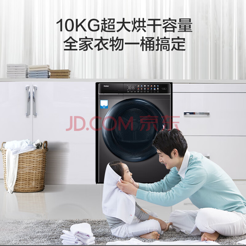 商品相册:海尔(Haier)晶彩 热泵全自动滚筒烘干机烘衣服干衣机 10KG 空净过滤 速热补偿 家电补贴自营 EHG100FMATE8SU1第