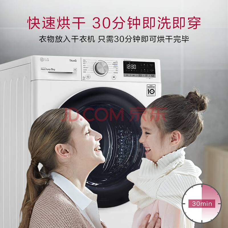 商品相册:LG奢华白 烘干机 9KG大容量 双转子变频热泵 除菌除螨 冷凝器自清洁 被褥护理 RC90V9AV4W第