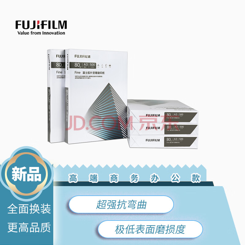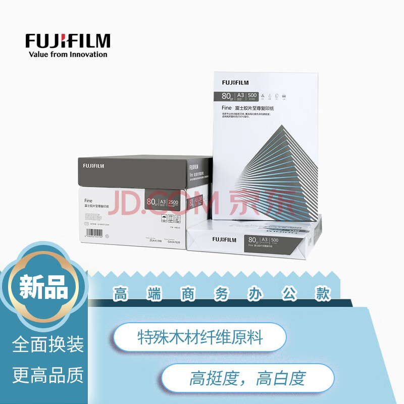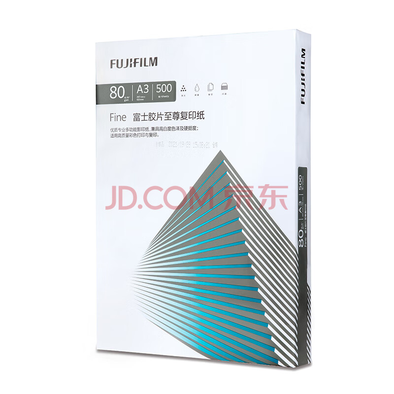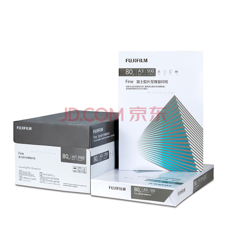 商品相册:富士胶片FUJIFILMFine 至尊80g A3复印纸 500张/包 5包/箱(2500张) 京东自营打印纸 a3 白纸 整箱第
