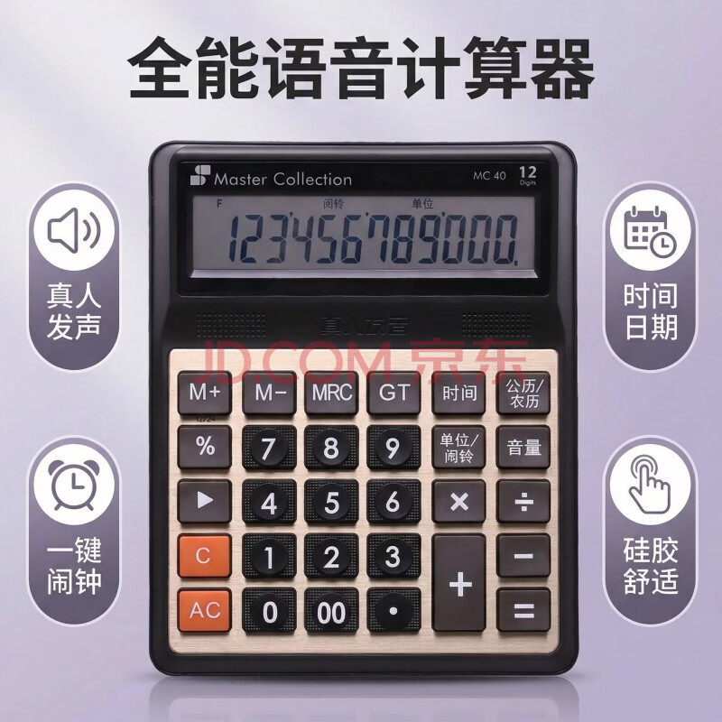 商品相册:三木(SUNWOOD)名匠系列 大号宽屏真人语音桌面计算器/附两节5号电池 MC40第