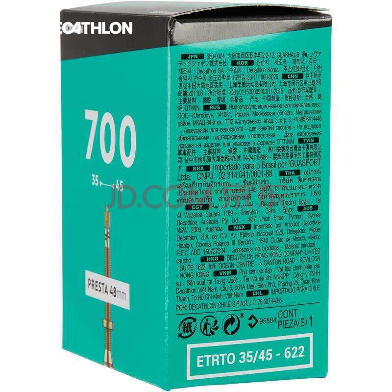 商品相册:迪卡侬山地公路自行车内胎700OVBHC700x35-45法式气嘴48mm176510第