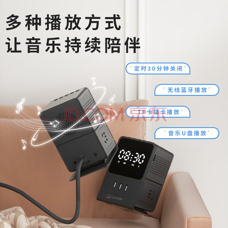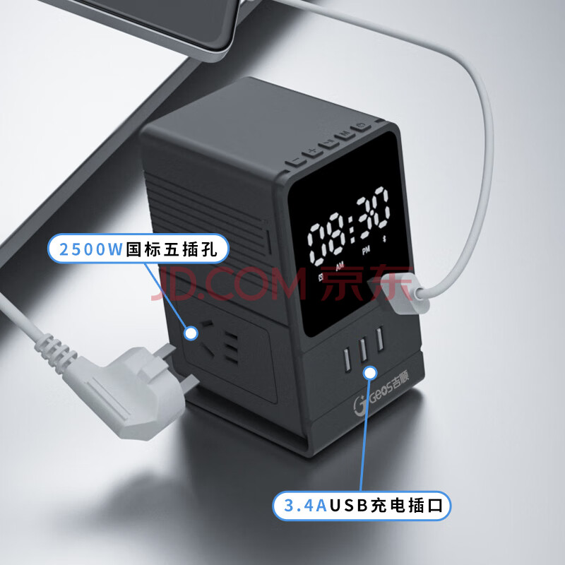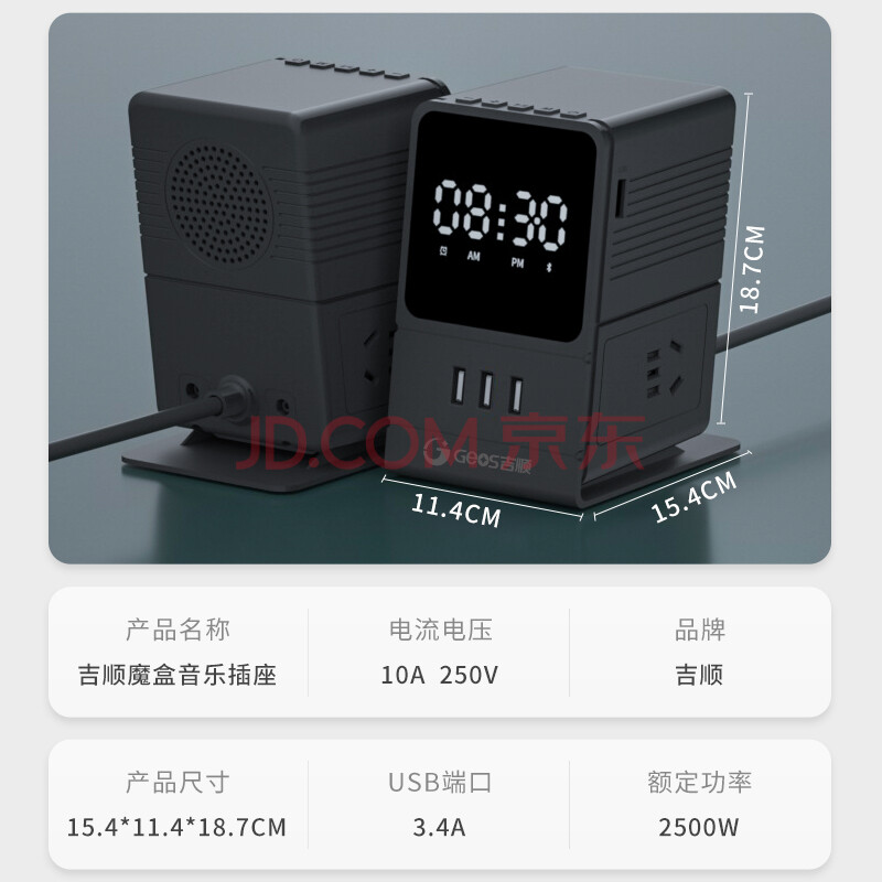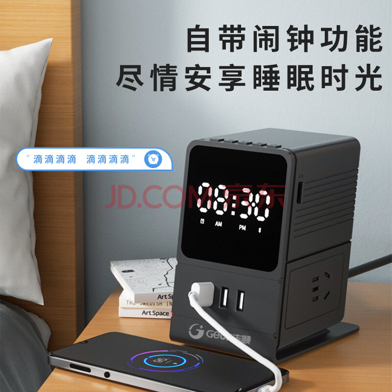 商品相册:吉顺立式排插座USB多功能桌面插排接线板家用床头闹钟音箱电源延长线拖线板新国标第