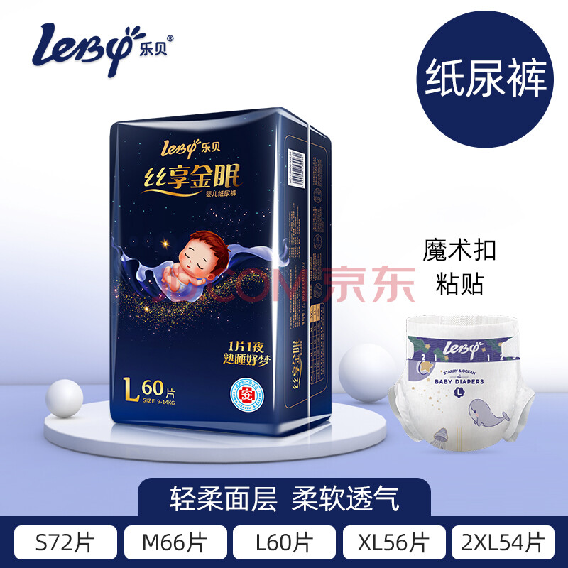 商品相册:leby丝享金眠纸尿裤L码60片【8-11kg】婴儿超薄干爽尿不湿透气防漏第