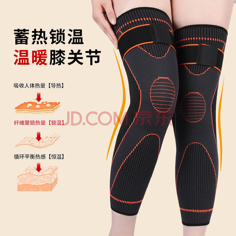 商品相册:耐力克斯 运动护膝保暖男女加长防寒加压绑带中老年人老寒腿黑色一对均码第