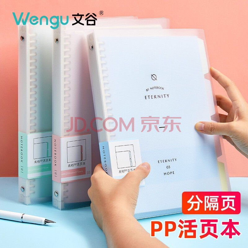 商品相册:文谷(Wengu)B5活页本60张笔记本子记事学生文具办公商务可拆卸活页夹26孔横线内芯四色索引分隔页粉色B17-B5/B第