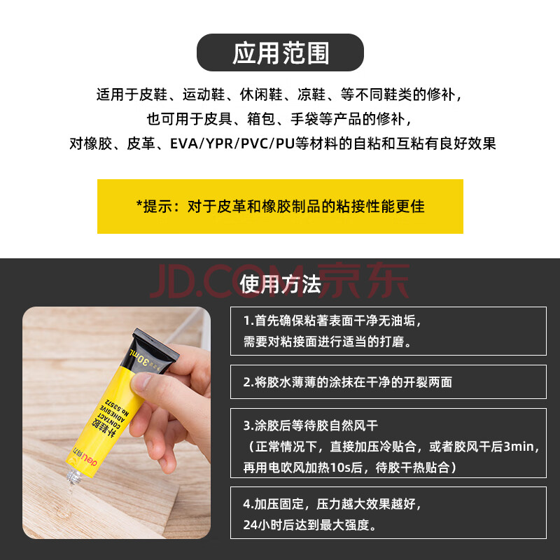 商品相册:得力(deli)补鞋胶水 防水不发硬粘鞋专用强力胶运动鞋帆布鞋皮鞋鞋厂修补软性树脂万能鞋胶 30ml/支 53572第