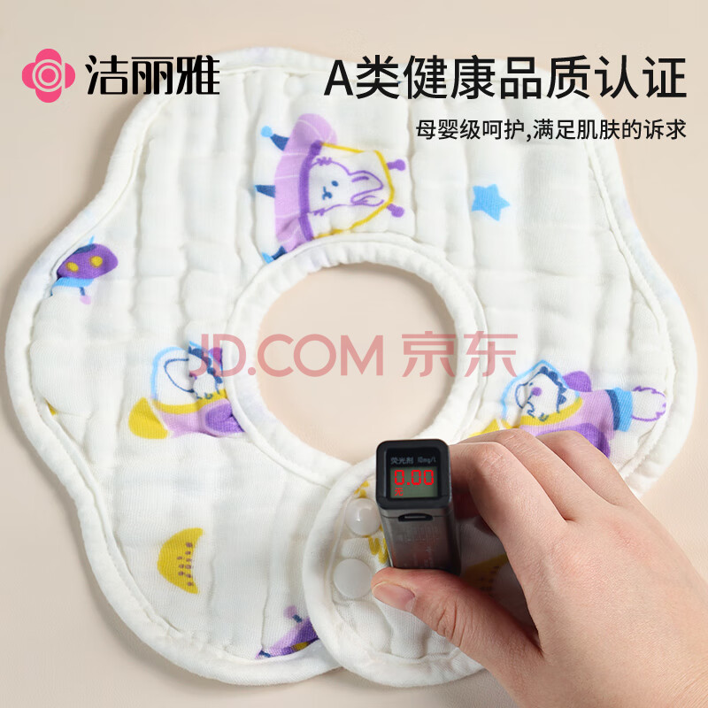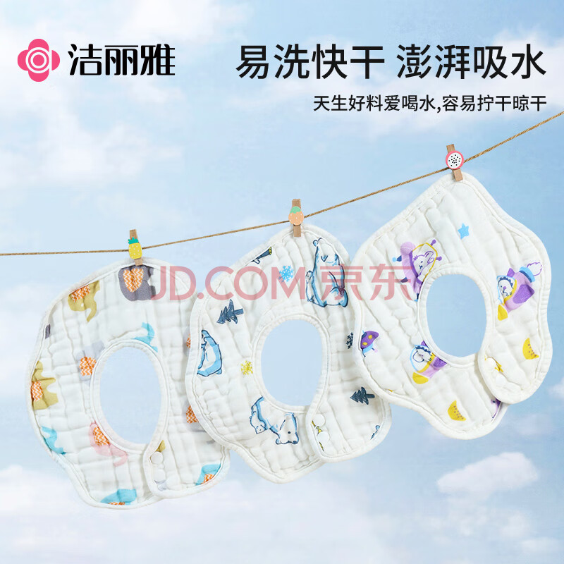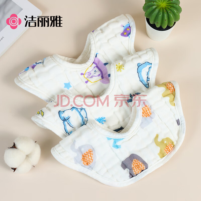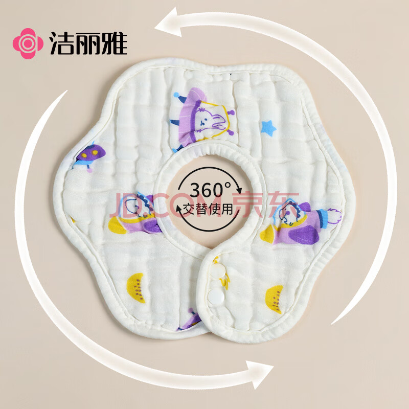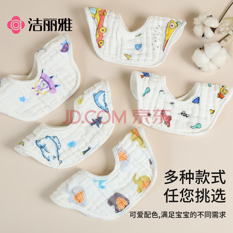 商品相册:洁丽雅(Grace)A类纯棉8层围嘴5条装婴儿纱布口水巾围兜宝宝360度旋转吸水饭兜第