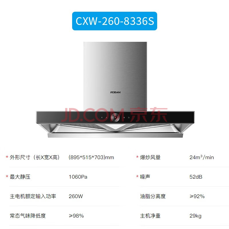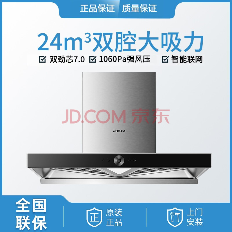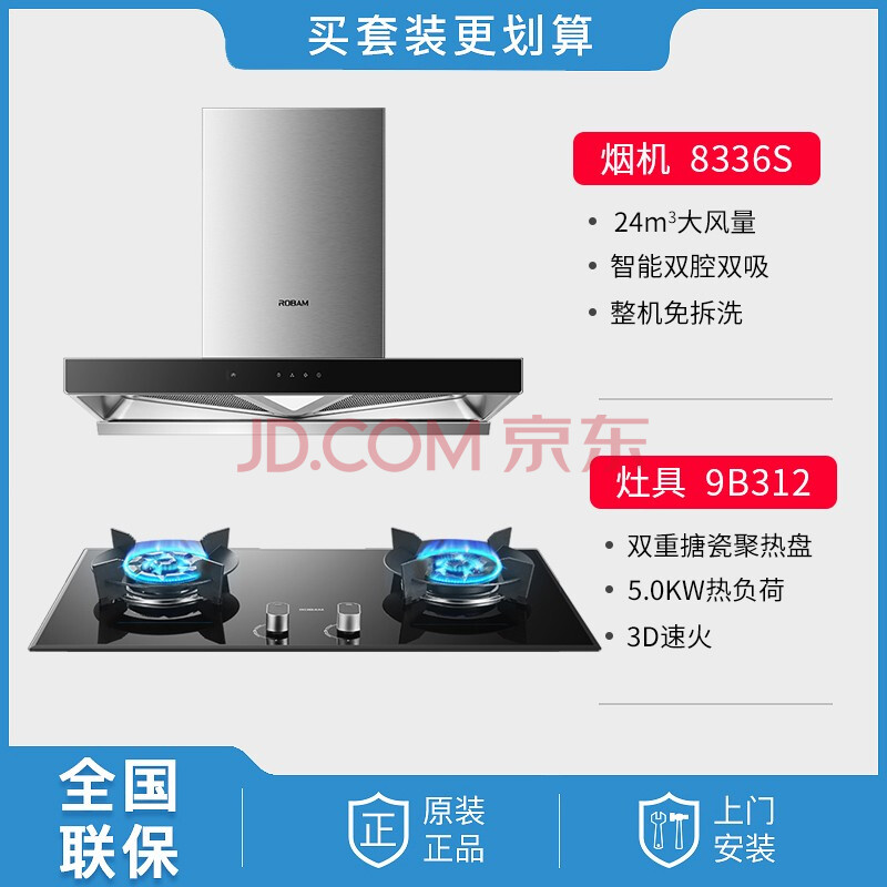 商品相册:老板 (Robam ) 24立方风量 1060Pa风压 双腔双吸 一唤即净大吸力油烟机燃气灶套装8336S+9B312第