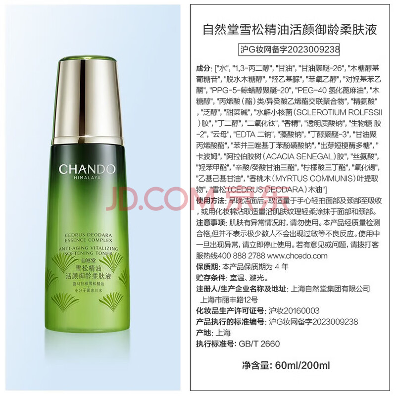 商品相册:自然堂【周翊然同款】雪松精油活颜御龄柔肤液200ml补水保湿生日第