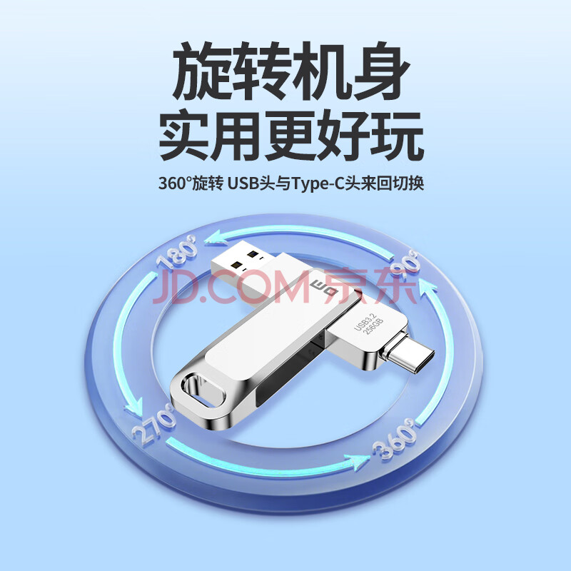 商品相册:DM大迈 256GB Type-C USB3.2 手机U盘 金属PD168 双接口手机电脑两用优盘第