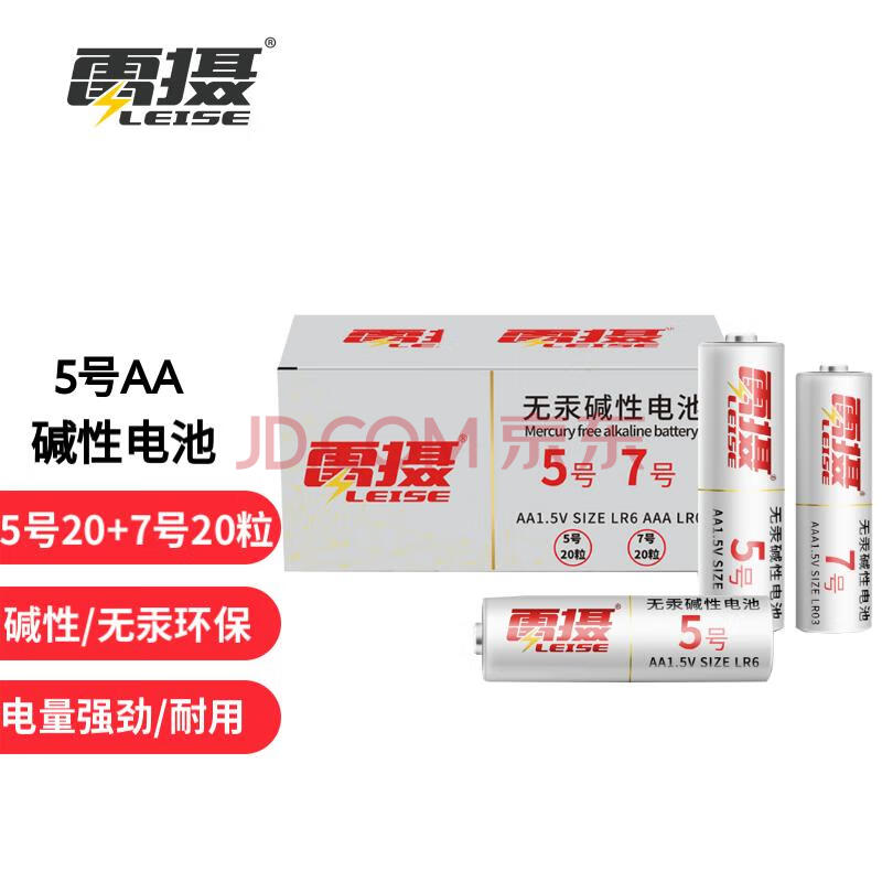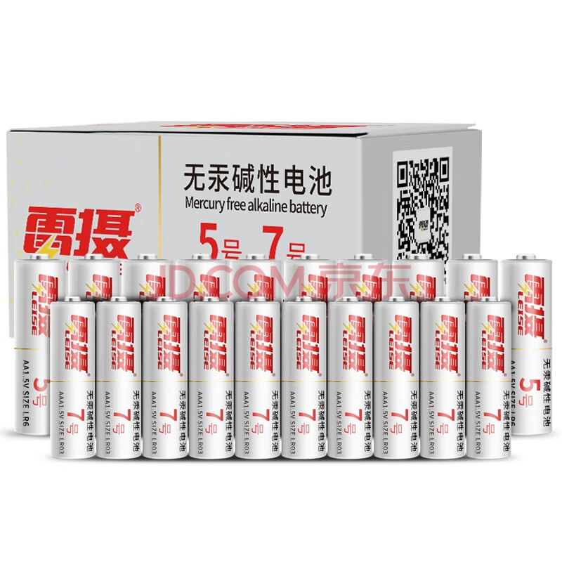 商品相册:雷摄(LEISE) 5号碱性电池 5号20粒+7号20粒 家庭装混搭40粒 适用于:儿童玩具/血压计/电子门锁/鼠标/遥控器等第