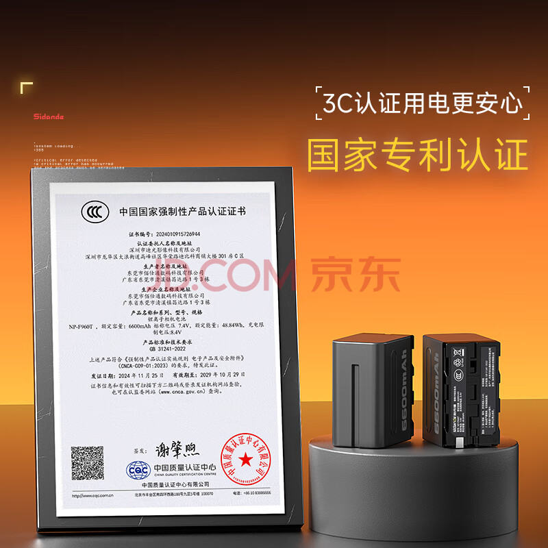 商品相册:斯丹德NP-F960/F970补光灯电池索尼SONY相机专用电池适用直播摄影灯LED灯监视器图传影视灯第