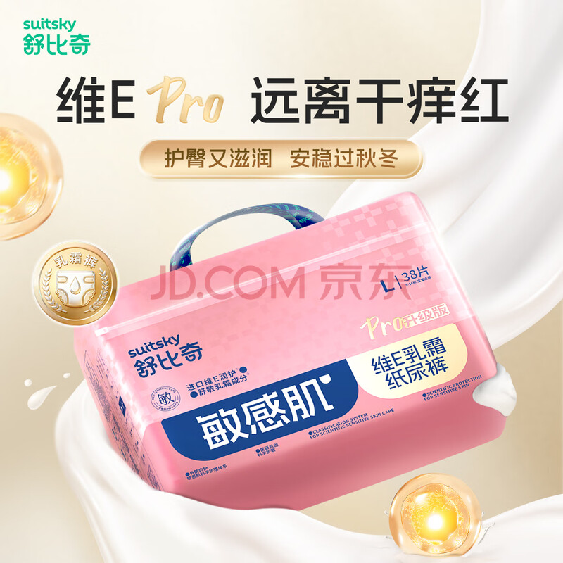 商品相册:舒比奇(Suitsky)维EPro乳霜敏感肌纸尿裤XL34片(12-17kg)大号婴儿尿不湿柔软透气第