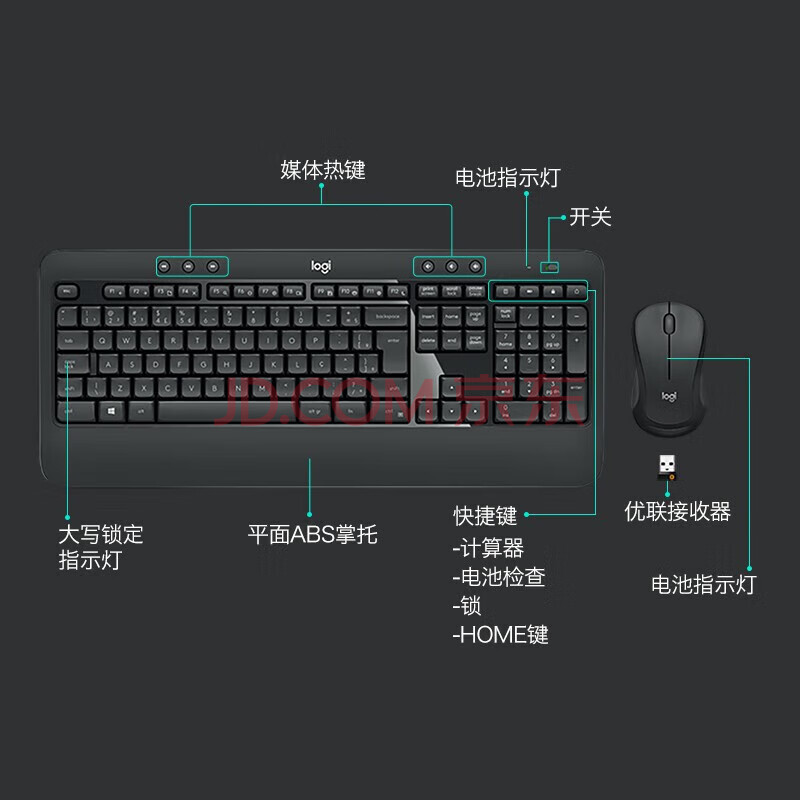 商品相册:罗技(Logitech)MK540无线键鼠套装 笔记本台式通用优联全尺寸 静音长续航支持家用商用 黑色第