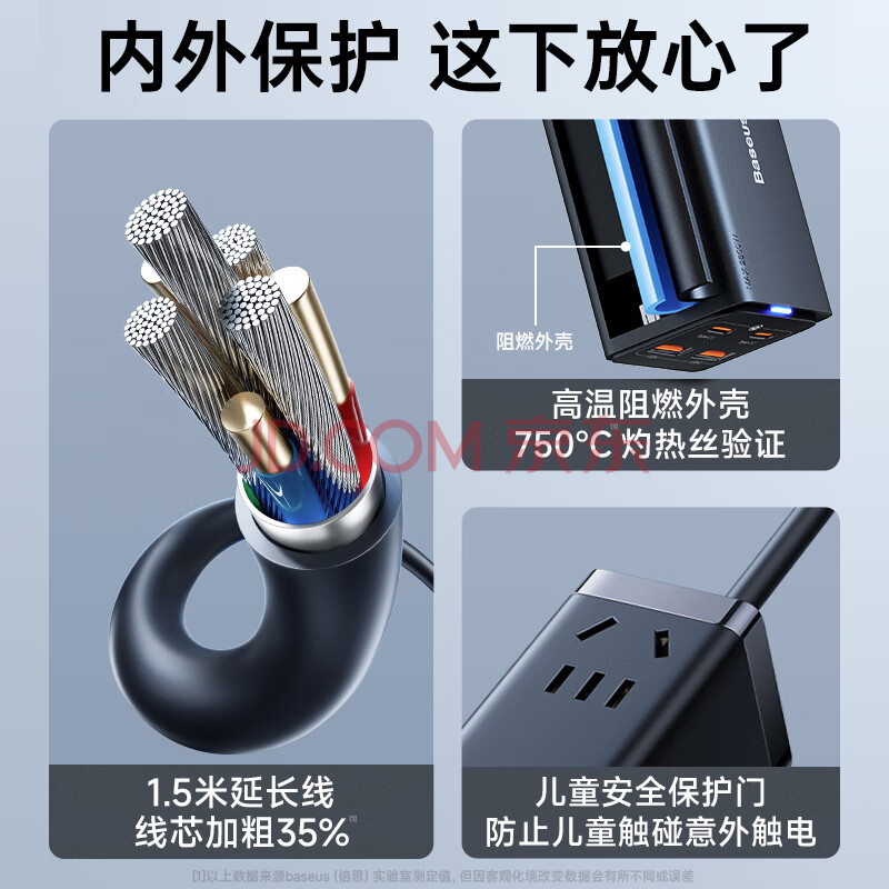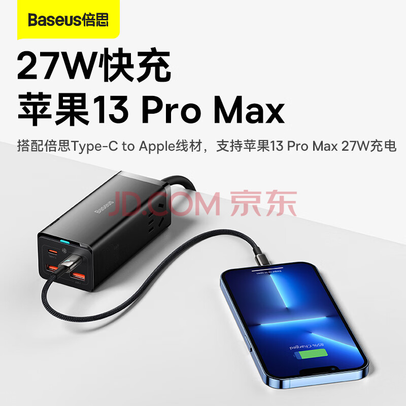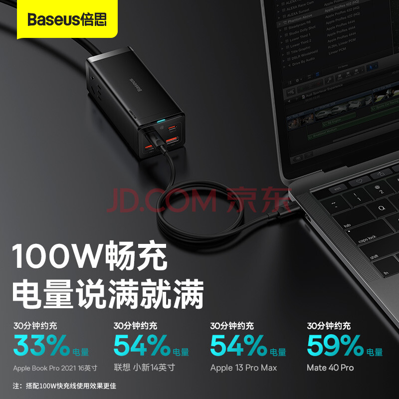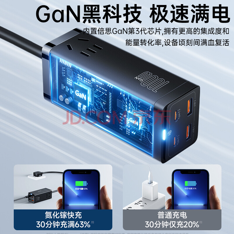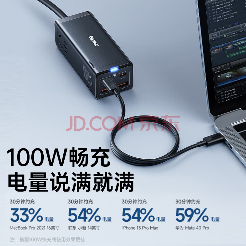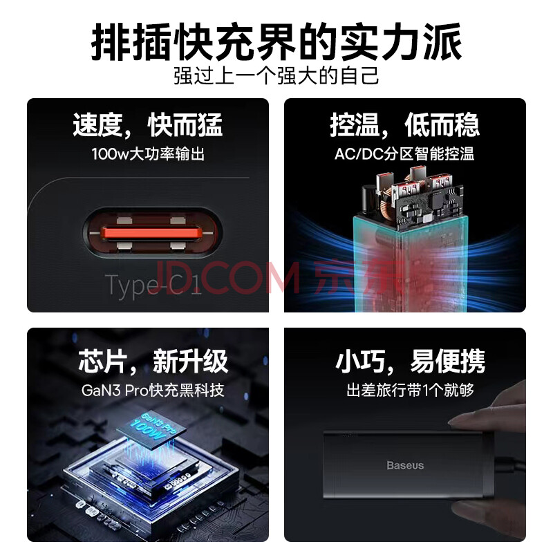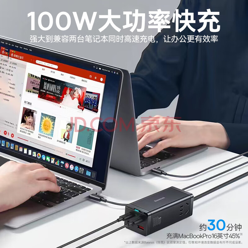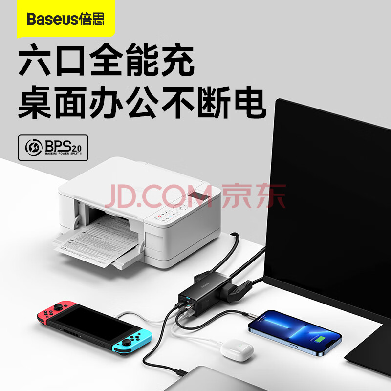 商品相册:倍思 插线板 100W苹果快充排插//插座/接线板/笔记本桌面氮化镓 Type-c口+USB口(2A2C)第