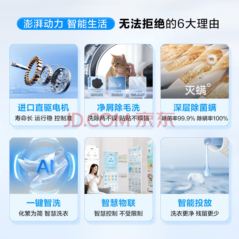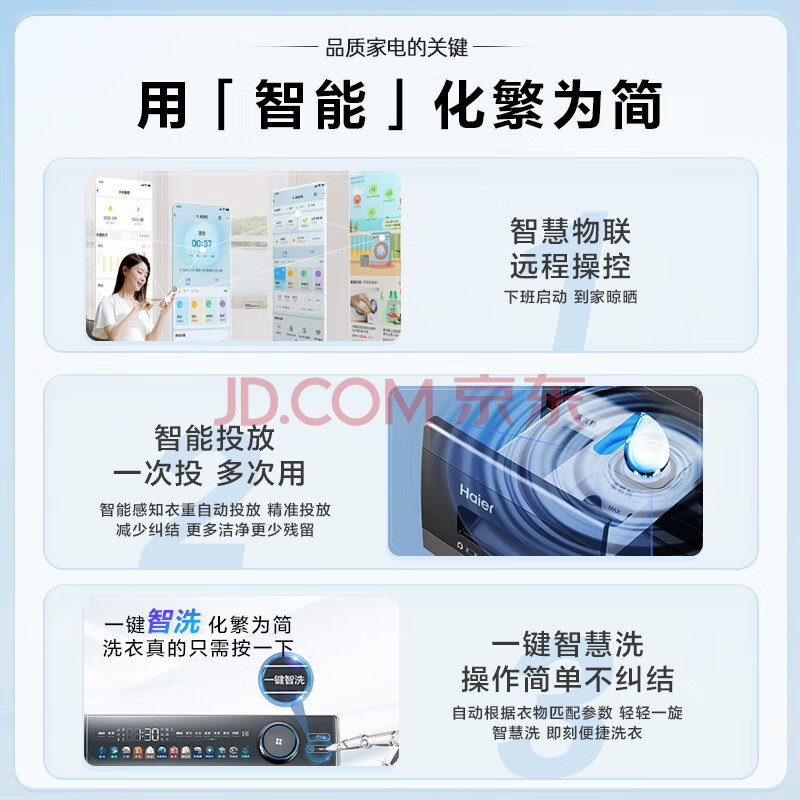 商品相册:海尔(Haier)直驱 全自动滚筒洗衣机 10KG 特渍洗 除毛 家用 京东自营 EG100MATE81SU1第