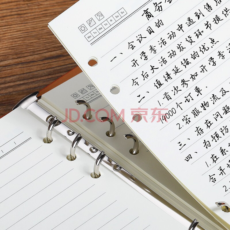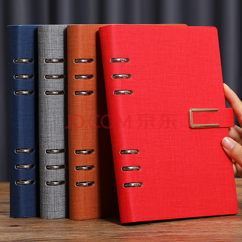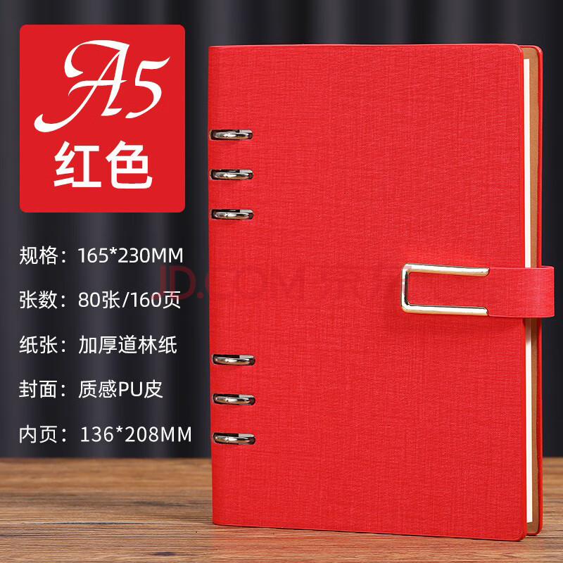 商品相册:嘉然恒 活页本a5加厚搭扣笔记本子文具简约记事本商务办公会议记录本可拆卸环扣活页学生日记本定制-红色第