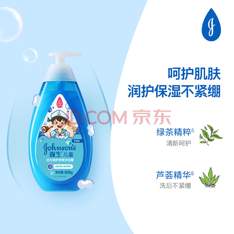 商品相册:强生(Johnson)儿童倍护舒爽沐浴露500g 青少年3-6-12岁温和清洁去汗易冲洗第