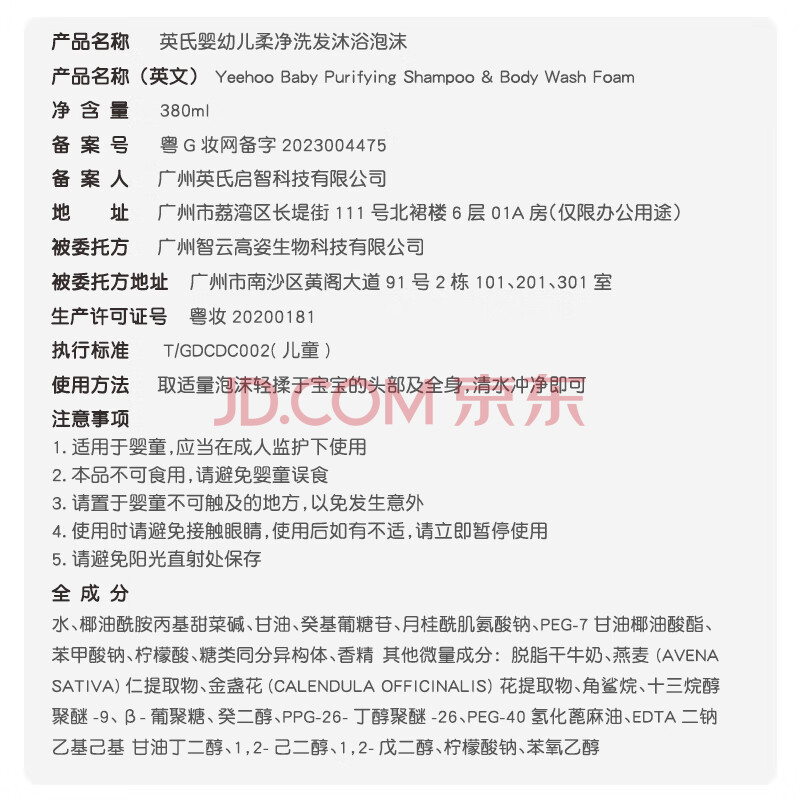 商品相册:英氏儿童沐浴露 婴儿沐浴露氨基酸洗发沐浴露二合一泡沫儿童温和380ml第