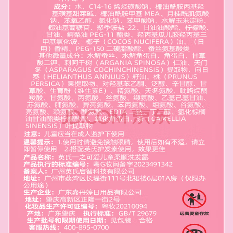 商品相册:英氏儿童洗发水 儿童洗发露宝宝专用洗头水3-12岁学生柔顺洗发水500ml第