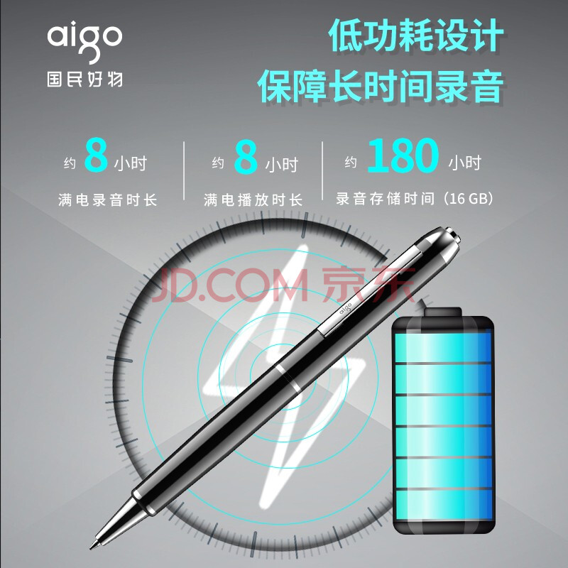 商品相册:爱国者(aigo) 笔形录音笔64G R8822专业高清降噪会议记录转文字录音豆 学习采访记录 录音器 黑色第