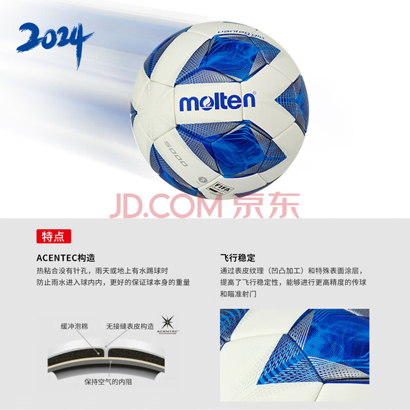 商品相册:摩腾 molten足球5号 F5A5000国际足联FIFA公认热粘合发泡层比赛足球第
