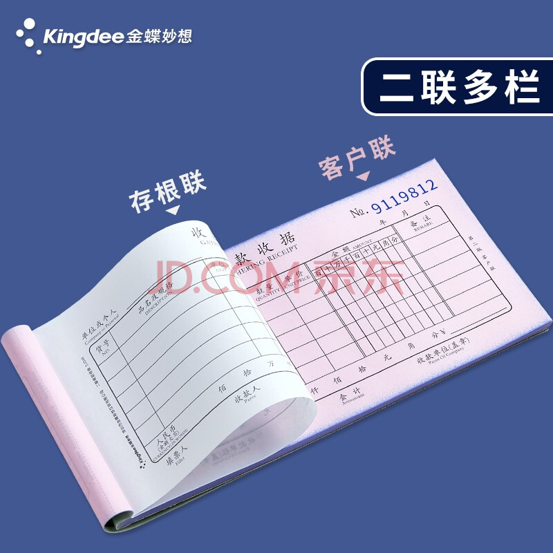 商品相册:金蝶(kingdee)二联多栏收据单无碳复写收款收据 打印手写收据单样本54K 30组/本 10本/包第