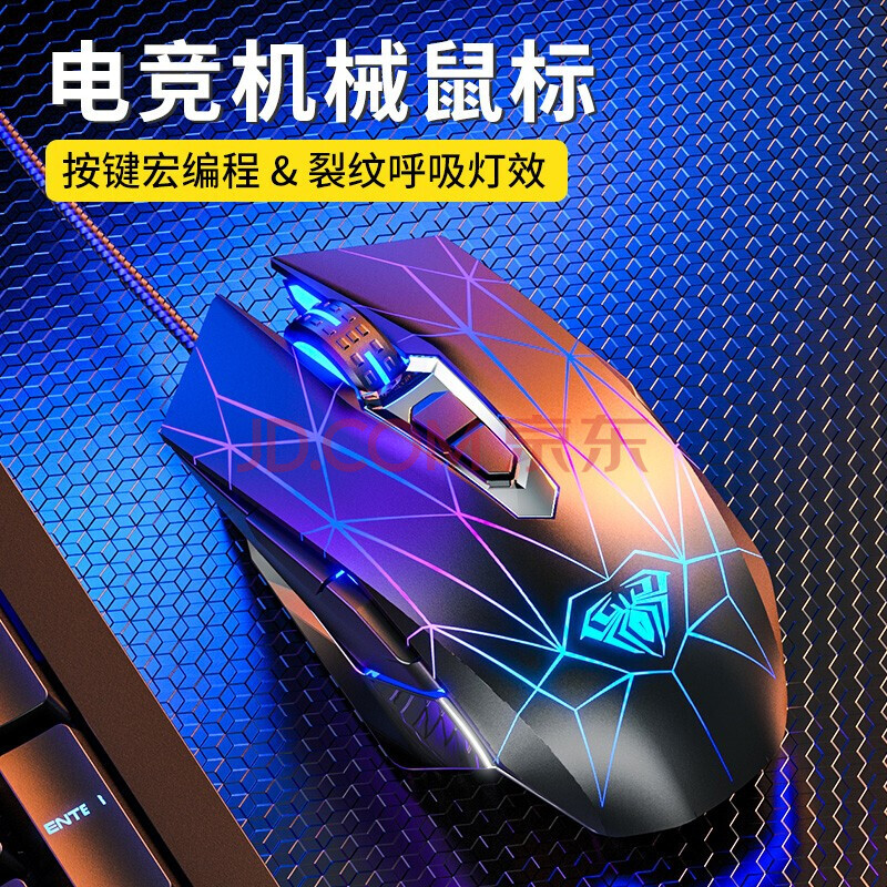 商品相册:狼蛛(AULA)T101真机械手感键盘鼠标套装 有线104键键鼠套装 游戏办公电脑键盘混光吃鸡套装 金属面板黑第