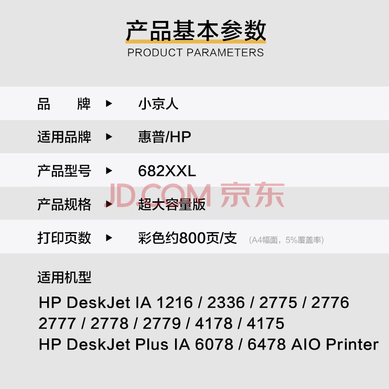 商品相册:小京人适用惠普682墨盒可加墨惠普HP 2776 2775 6078 2777 2778 4178 6478 2779 4175 2336 1216打印机墨盒第