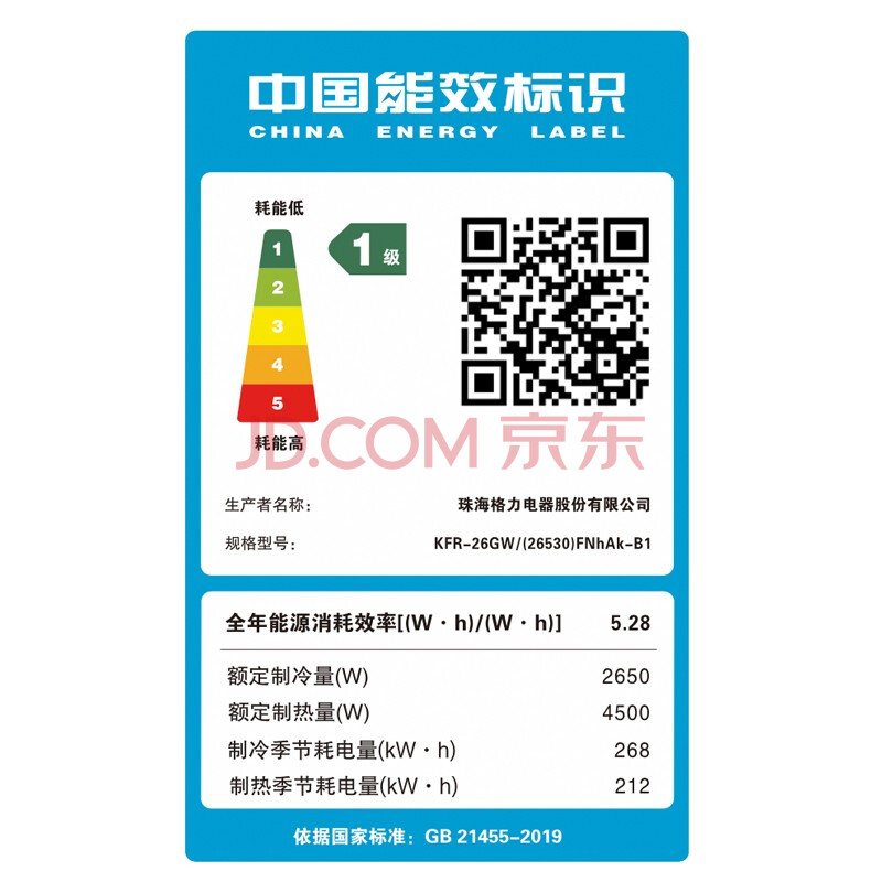 商品相册:格力 (新能效) 大1匹 天丽 新一级能效 变频冷暖空调 挂机 KFR-26GW/(26530)FNhAk-B1(线下同款)第