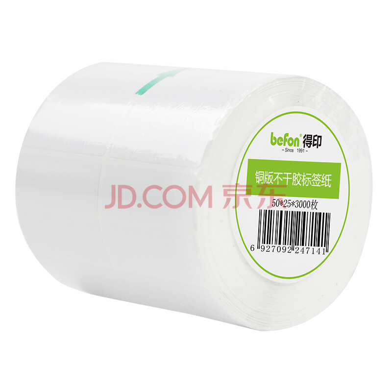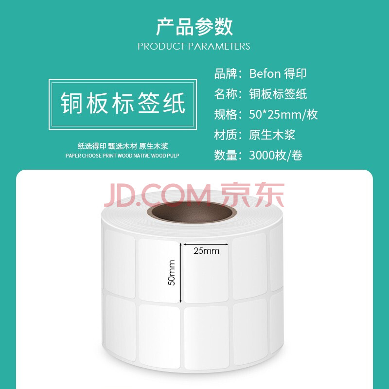 商品相册:得印(befon)不干胶标签纸 铜版纸 50mm*25mm*3000枚 双排 条码纸 打印贴纸第