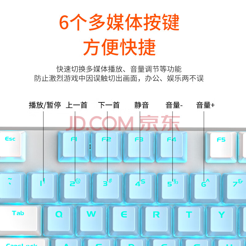 商品相册:达尔优(dareu)EK815机械合金版机械键盘 有线电竞游戏键盘 87键多键无冲 笔记本电脑键盘 白蓝青轴第
